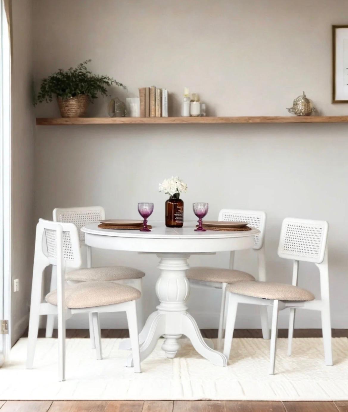 Kapalı hâlde dengeli ve şık bir yuvarlak form sunan masa, açıldığında oval yapıya dönüşerek geniş aile sofraları ve misafirli yemekler için ideal bir alan yaratır. Günlük kullanımda kompakt, özel anlarda ise maksimum kapasite sunar.